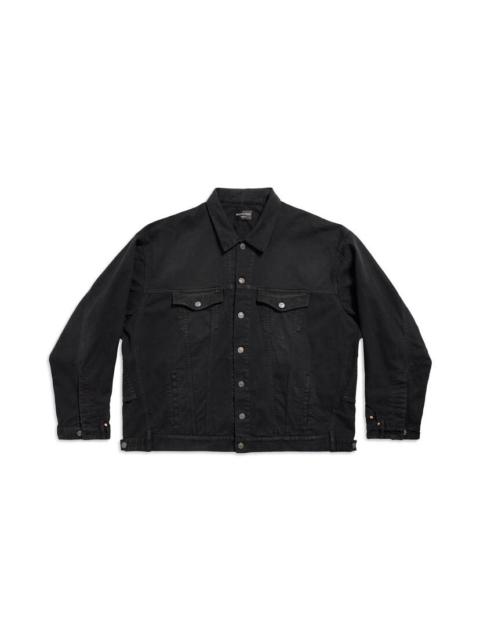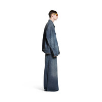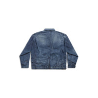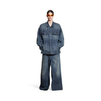 Deconstructed Jacket in dark blue Italian ring denim is from look 16 of Balenciaga's Winter 23 Collection. PRODUCT DETAILS • Italian indigo ring denim • This item is unisex • Large fit • 7 button front • 2 buttoned pockets at chest • 2 slash pockets • Buttoned cuffs • Adjustable buttoning at waist • Deconstructed denim details at cuffs and hem • 1 zipped and buttoned vent at back • Balenciaga engraved flex buttons • Balenciaga inlaid patch at back • Made in Italy • Dry cleaning • The model is wearing a size S Material: 100% cotton