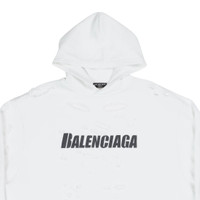 Destroyed Hoodie in white and black medium fleece PRODUCT DETAILS • Medium fleece • Rippings and holes allover the fabric • Oversize fit • Dropped shoulder • Caps artwork printed at front • 1 kangaroo pocket at front • Gathered cuffs • Made in Portugal • Cold machine wash • Model is 187 cm / 6'2" and is wearing a FR size S Material: 100% cotton