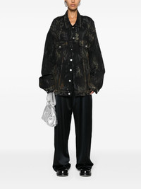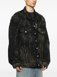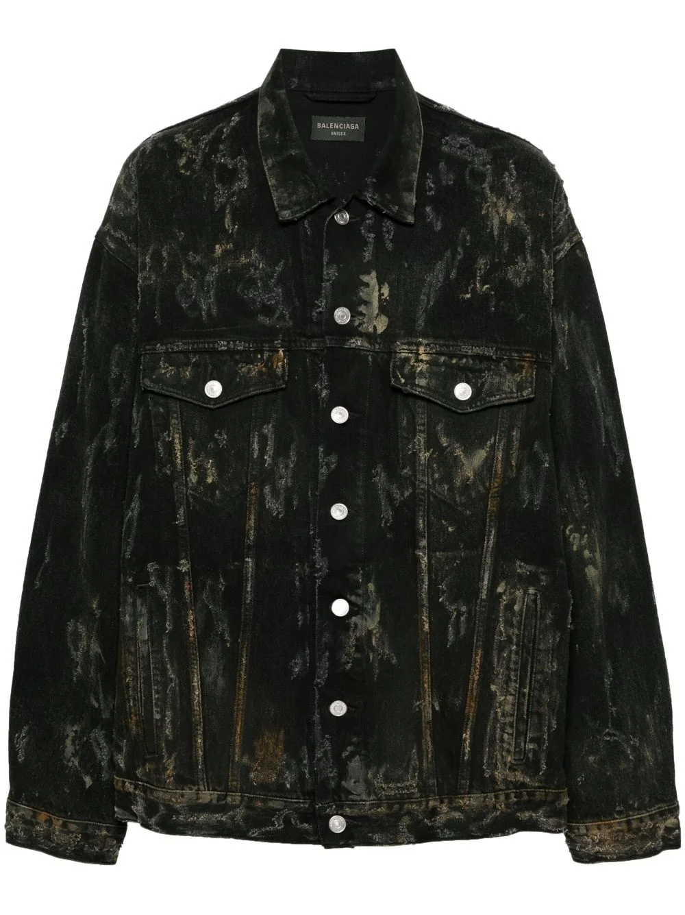 distressed denim jacket Balenciaga offers a modern take on the classic denim jacket. This iteration highlights the brand's unconventional aesthetic with its signature oversize silhouette and distressed effect. Highlights - Black - Cotton - Distressed effect - Ripped detailing - Classic collar - Front button fastening - Drop shoulder - Long sleeves - Buttoned cuffs - Two chest flap pockets - Straight hem - When buying this unisex item, keep in mind that it is graded in standard men's sizing. Made in Italy Composition Outer: Cotton 100% Lining: Polyester 65%, Cotton 35% SIZE & FIT Measurement CHEST 61.41 in(156 cm) SLEEVE LENGTH 38.97 in(99 cm) LENGTH 31.88 in(81 cm) WAIST 55.9 in(142 cm) Shoulder Width 24.4 in(62 cm) Washing instructions Machine Wash
