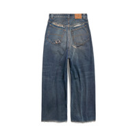 Baggy Pants in blue denim PRODUCT DETAILS • Cotton denim • Mid-waist • Destroyed details at front and back • Covered button fly • 5 belt loops • 5 pockets • Made in Italy Main material: 100% cotton