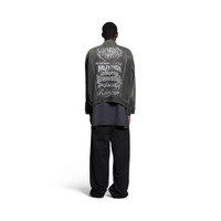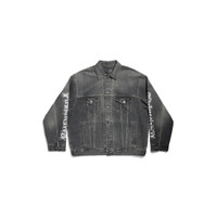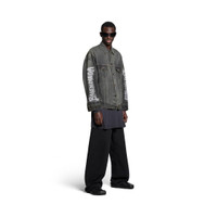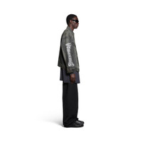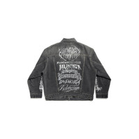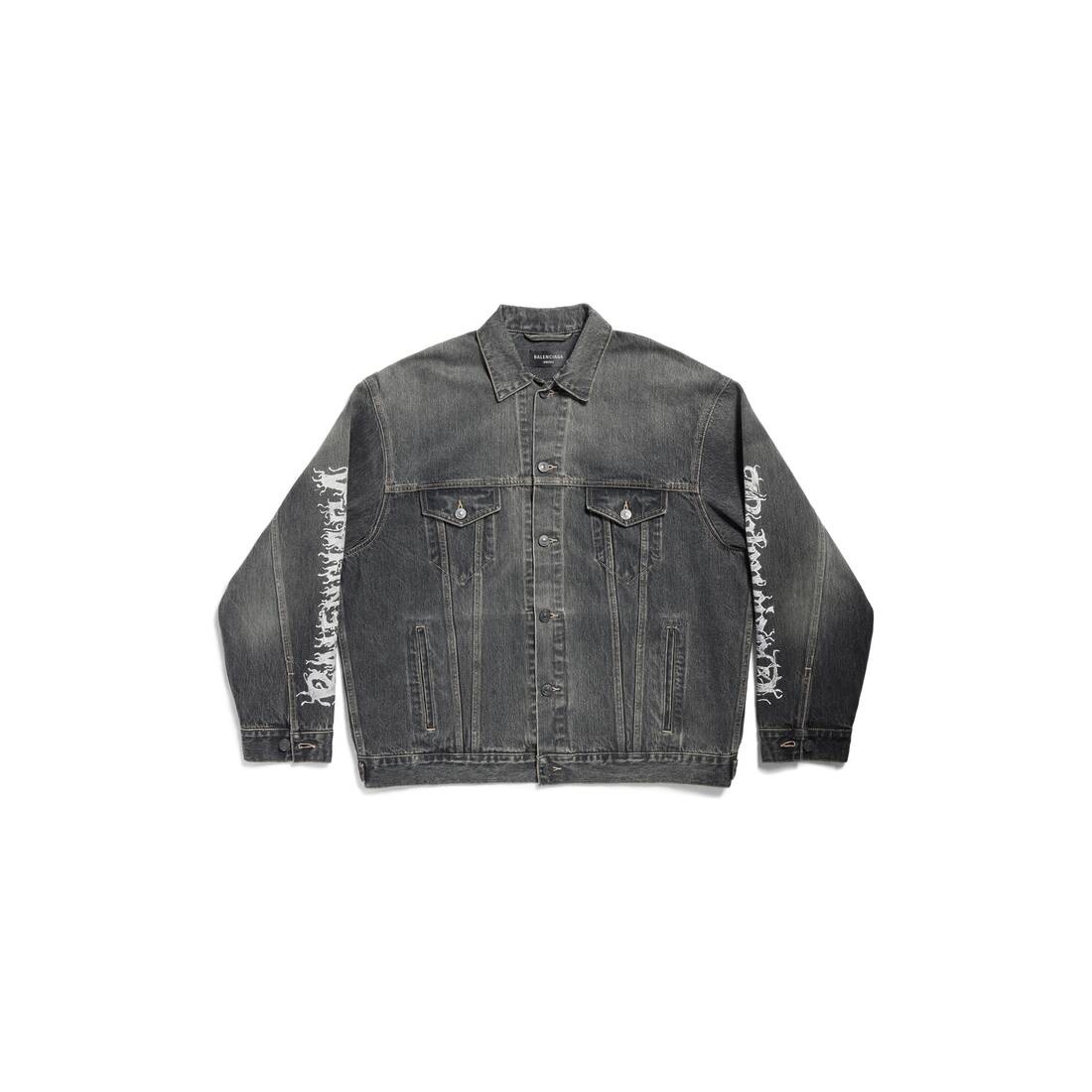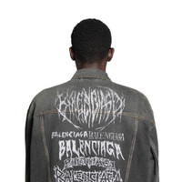 DIY Metal Large Fit Jacket in black Japanese denim PRODUCT DETAILS • Japanese denim • This item is unisex • Large fit • 6 button front • 2 buttoned pockets at chest • 2 slash pockets • Buttoned cuffs • Adjustable buttoning at waist • Balenciaga engraved flex buttons • DIY metal artwork printed at back and sleeves • Made in Japan • Dry cleaning • Model is 190 cm / 6'3" and is wearing a size S Material: 100% cotton