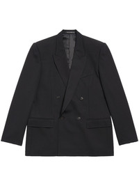 double-breasted wool blazer Highlights - Black - Wool - Peak lapels - Chest welt pocket - Double-breasted button fastening - Two side flap pockets - Long sleeves - Buttoned cuffs - Central rear vent - Straight hem - We've partnered with good on you â an independent agency that rates how brands perform in relation to their impact on the planet, people and animals, with a multi-criteria rating simplified to a five points scale. in order to be awarded our conscious label, larger brands need to score a minimum of four out of five ('good'), while smaller brands must score at least three out of five ('it's a start'). - This item comes from a brand rated four out of five ('good') by good on you at the time it was added on farfetch. please note, this is a brand-level rating and does not guarantee that this product is made with conscious materials. - Learn more about what makes a product conscious on our conscious criteria page - When buying this unisex item, keep in mind that it is graded in standard men's sizing. Made in Italy Composition Wool 100% SIZE & FIT FittingInformation This piece is unisex – if you usually select men's sizing expect a loose fit throughout; if you usually select women's sizes, expect an oversized fit