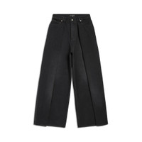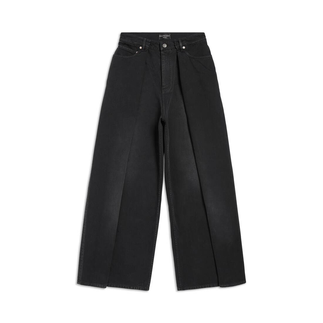 Double Side Pants in black soft left hand denim are from look 20 of Balenciaga's Winter 23 Collection. PRODUCT DETAILS • Soft black left hand denim • This item is unisex • Large fit • Double side effect, 1 side slit long panel attached • Mid-waist • Covered zip fly • 5 belt loops • 5 pockets • Balenciaga engraved flex buttons • Balenciaga inlaid patch at back • Made in Italy • Dry cleaning • The model is wearing a size S Material: 100% cotton