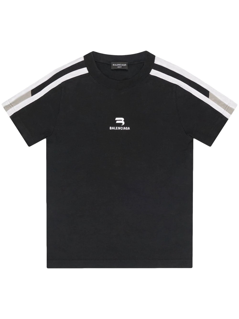 embroidered-logo stretch-cotton T-shirt from BALENCIAGA featuring black/white, stretch-cotton, embroidered logo, side stripe detailing, crew neck, short sleeves and straight hem. POSITIVELY CONSCIOUS: We've partnered with Good On You — an ethical agency that rates how sustainably brands perform across various people, planet and animal welfare criteria. This product comes from a Conscious brand that performs well in relation to their impact on the planet, for example ensures the use of materials that limit the amount of chemicals, water and wastewater involved in production processes.. Highlights - Black/white - Stretch-cotton - Embroidered logo - Side stripe detailing - Crew neck - Short sleeves - Straight hem - Positively conscious: we've partnered with good on you — an ethical agency that rates how sustainably brands perform across various people, planet and animal welfare criteria. this product comes from a conscious brand that performs well in relation to their impact on the planet, for example ensures the use of materials that limit the amount of chemicals, water and wastewater involved in production processes. Imported Composition lining: Polyester 100% outer: Cotton 94%,Spandex/Elastane 6%