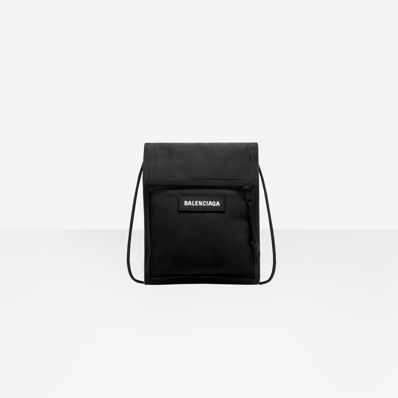 Small crossbody bag with stitched Balenciaga label PRODUCT DETAILS Dimensions: W 5.8 inches H 7.4 inches D 1.6 inches Composition: 85% Nylon, 15% Polyester - Small nylon bag - Crossbody thin strap - Front velcro fastening - Front zip pocket - Interior patch pocket - Front stitched Balenciaga label - Made in Italy - Wipe with a soft clean cloth - The item comes with a Balenciaga dustbag