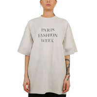 Fashion Week Flatground T-Shirt in light grey and black vintage jersey PRODUCT DETAILS • Organic vintage jersey • Regular fit • Ribbed finishings at collar • Fashion Week artwork printed at front • Made in Portugal • Cold machine wash • Model is 177 cm / 5'68'' and is wearing a FR size S Material: 100% cotton