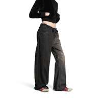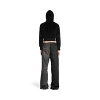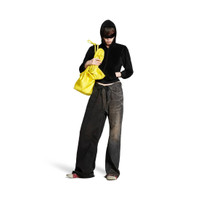 Fifty-Fifty Pants in black Japanese denim and Italian ring denim are from look 33 of Balenciaga Fall 24 collection. PRODUCT DETAILS • Japanese denim and Italian ring denim • This item is unisex • Assembled from 2 different fabrics • Mid-waist • Covered button fly • Drawstring waist • 5 belt loops • 5 pockets • Asymmetric leg length • Balenciaga engraved flex buttons • Balenciaga inlaid patch at back • Destroyed at back hem • Made in Japan 100% cotton