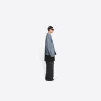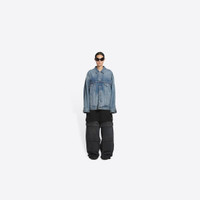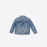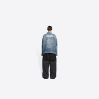 College Large Fit Jacket in light blue Japanese authentic denim PRODUCT DETAILS • Japanese authentic denim • Unifit • Large fit • 6 button front • 2 buttoned pockets at chest • 2 slash pockets • Buttoned at cuffs • Adjustable buttoning at waist • Balenciaga engraved flex buttons • Balenciaga inlaid patch at back • College artwork embroidered at back • Made in Japan • Dry cleaning • Model is 184 cm / 6'03" and is wearing a FR size S Material: 100% cotton