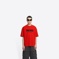 Fortnite©2021 EPIC GAMES, INC T-Shirt Medium Fit in red and black vintage jersey PRODUCT DETAILS • Organic vintage jersey • This item is unisex • Medium fit • Crewneck • Fortnite artwork embroidered at front and back ©2021 EPIC GAMES, INC • Balenciaga logo embroidered at front • Made in Portugal • Cold machine wash • The model is wearing a FR size S Material: 100% cotton