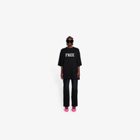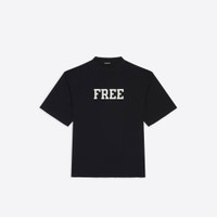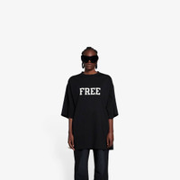 Free Wide Fit T-Shirt in black and white vintage jersey PRODUCT DETAILS • Destroyed vintage jersey • Wide fit Mid-thigh length • Elbow sleeve length • Crewneck • Free artwork printed on front • Made in Portugal • Cold machine wash • Model is 185 cm / 6'10'' and is wearing a FR size S Our approach: We are committed to the sustainable and ethical management of our operations. The goal of reducing our environmental impact influences our decisions. At all levels and in all locales—whether at offices and stores or along the supply chain—we respect high standards for social and ecological responsibility. Balenciaga is also fur- and exotic leather-free. Material: 100% cotton