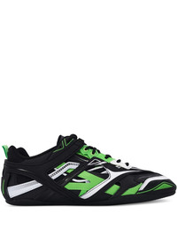 Drive caged mesh sneakers Balenciaga’s Drive sneakers are an exaggerated riff on football styles. The black mesh uppers are caged in mismatched layers of neon-green and white rubber with reflective trims. Highlights - Neon green - Black - Mesh panelling - Caged design - Debossed logo to the rear - Logo patch at the tongue - Embossed logo to the side - Pull-tab at the heel - Round toe - Front lace-up fastening - Flat rubber sole Imported Composition Lining: Fabric 100% Outer: Polyurethane 60%, Polyester 28%, Nylon 12% Sole: Rubber 100%