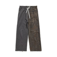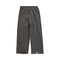 Hybrid Baggy Pants in dark brown organic Japanese denim and dark grey heavy fleece are from look 53 of Balenciaga Summer 24 Collection. PRODUCT DETAILS • Japanese denim and heavy fleece • This item is unisex • Large fit • Assembled from 2 different fabrics • Mid-waist • Drawstring waist • Semi-elasticated waistband • Covered button fly • 3 belt loops • 1 slash pocket at front • 1 patch pocket at back • Destroyed at back hem • Worn-out effect throughout • Made in Japan • Dry cleaning • Model is 190 cm / 6'3" and is wearing a size S Material: 100% cotton