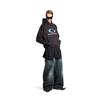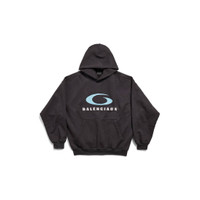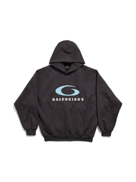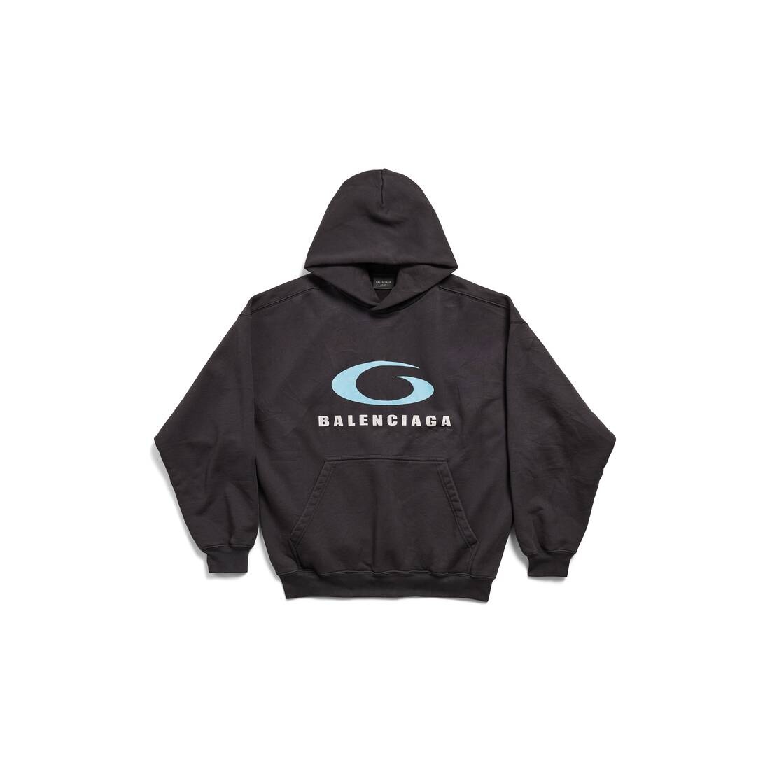 Loop Sports Icon Hoodie Medium Fit in washed black/blue archetype fleece PRODUCT DETAILS • Archetype fleece • This item is unisex • Hood without drawstring • Dropped shoulders • 1 kangaroo pocket on front • Gathered at cuffs and waistline • Loop sports icon artwork printed at front • Made in Portugal Main material: 100% cotton