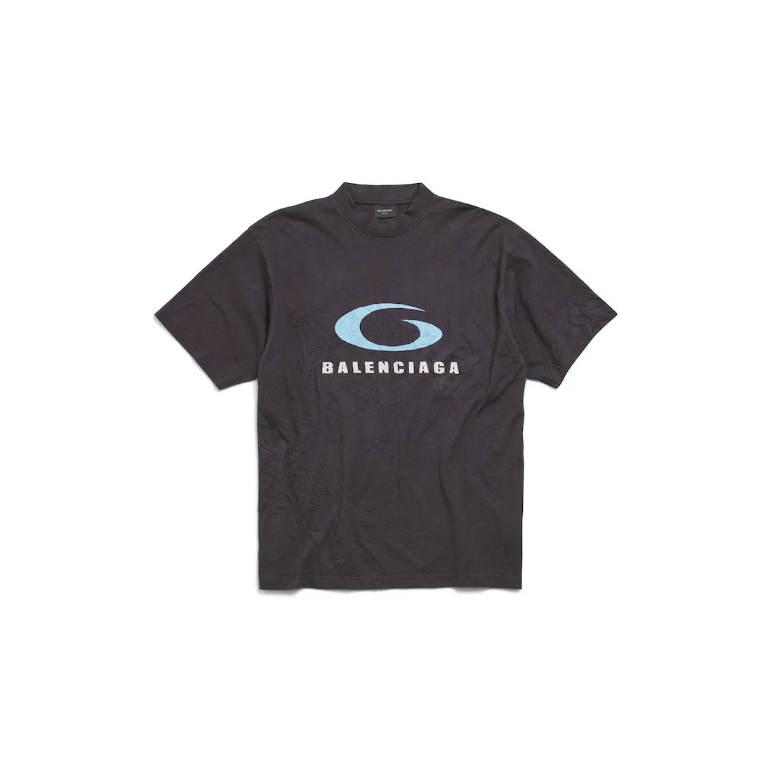 Loop Sports Icon T-Shirt Medium Fit in washed black and blue vintage jersey PRODUCT DETAILS • Vintage jersey • This item is unisex • Crewneck • Short sleeves • Loop sports icon artwork printed at front • Washed-out effect • Made in Portugal Main material: 100% cotton - Trimming: 95% cotton, 5% elastane