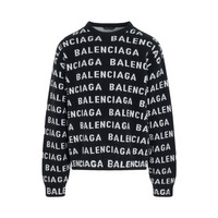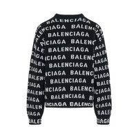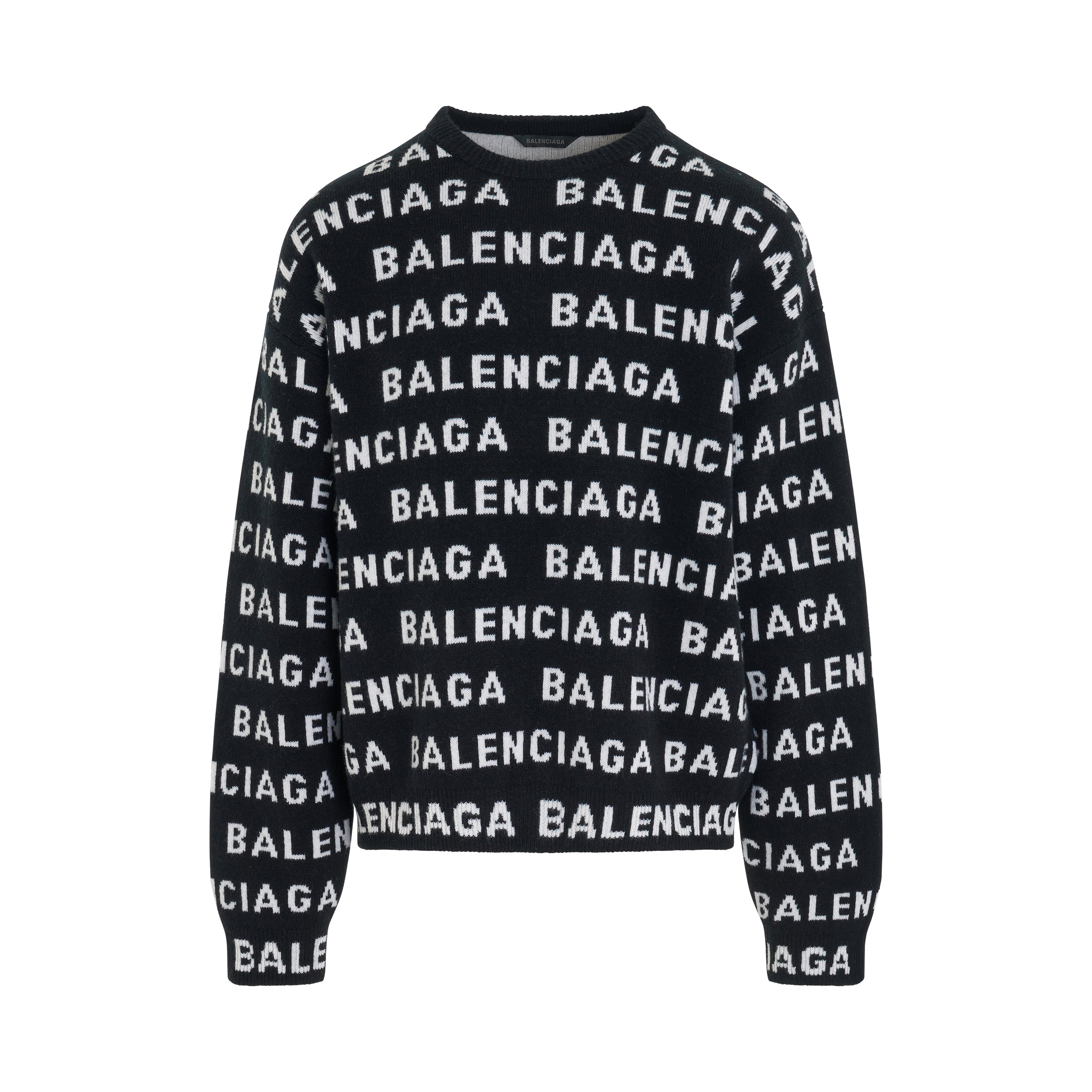 Stay stylish and cosy with our All-Over Logo Knit Sweater in Black/White. Made with high-quality material, this sweater features a sleek and modern design with our logo woven in. Perfect for any occasion, this sweater is a must-have for any fashion-forward wardrobe. - Composition: 98% Wool, 2% Polyamide - Intarsia-knit logo - Crew neck - Drop shoulder - Long sleeves - Ribbed cuffs and hem - Straight hem SKU: 761596T16731070