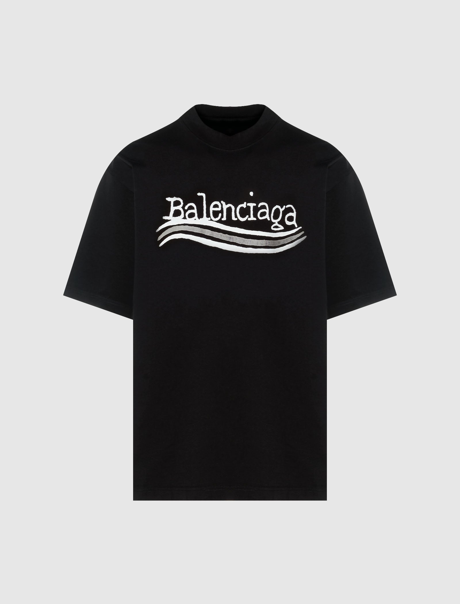 Large-fit short sleeve cotton t-shirt. Mock neck. Graphic logo text at chest and back. - 100% Cotton SKU: 641675-TNVE7-1197