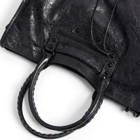 Le City Large Bag in black Arena Storico lambskin, matte black hardware PRODUCT DETAILS • Dimensions: L18,1 x H11,4 x W6,5 inch • Arena Storico lambskin • Two leather hand-braided handles • Adjustable and removable shoulder strap (drop: 14,1 inch) • Matte black hardware • Zipped closure with knotted leather puller • Front zipped pocket with knotted leather puller • 1 inner zipped pocket • Cotton canvas lining • Made in Italy lambskin