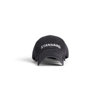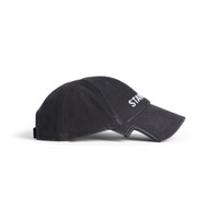 Standard Cap in faded black cotton drill PRODUCT DETAILS • Cotton drill • Worn-out details • Classic baseball cap shape • Ventilation eyelets embroidered on top • Adjustable hook and loop tab at back • Visor cut out on both sides • Standard artwork embroidered at front • Made in Italy Main material 1: 100% cotton