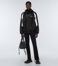 Part of Balenciaga's Winter '23 collection, this hoodie embodies effortless cool. Made from soft sheepskin, the style has an oversized fit, a kangaroo pocket, and gathered cuffs and waist. Product Details - Lining: 100% polyester, fully lined - Pocket lining: 100% cotton - Pockets: zipped pockets - Made in Italy - Hood - Designer color name: Black/Blue/White - Care instructions: specialist clean - Closure: two-way zipped front - Contains non-textile parts of animal origin - Embroidery: 100% polyester - Material: 100% lamb leather - Item number: P00765214 Size & Fit - Fits large to size - we recommend trying one size smaller - Elasticated hem - Oversized - Mid-weight material - Falls below the hip - The model in the picture is 185cm-6'1" and wearing a size 2