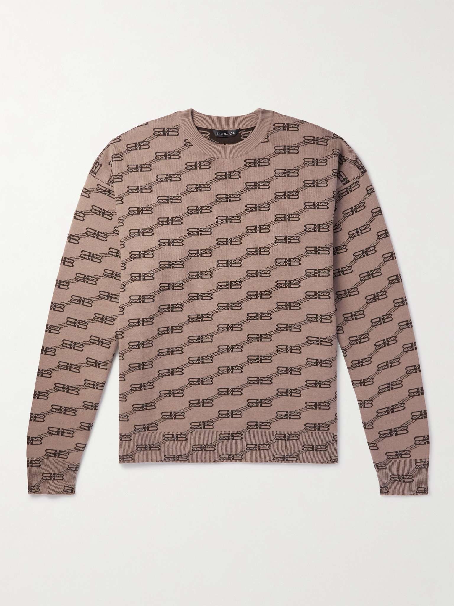 Balenciaga is known for putting its logo at the forefront of its designs. This sweater is jacquard-knitted with wool and cotton in its signature 'BB' monogram. It's cut for a slightly loose fit and has dropped shoulders and ribbed trims. Size & Fit - Fits true to size. Take your normal size - Designed for a slightly loose fit - Mid-weight, slightly stretchy fabric - Model is shown wearing a M - Model measures: chest 38"/ 96cm, height 6'2"/ 188cm Details & Care - Beige and brown cotton, wool, polyester, polyamide and elastane-blend - 41% cotton, 28% wool, 21% polyester, 9% polyamide, 1% elastane - Dry clean - This item has been imported