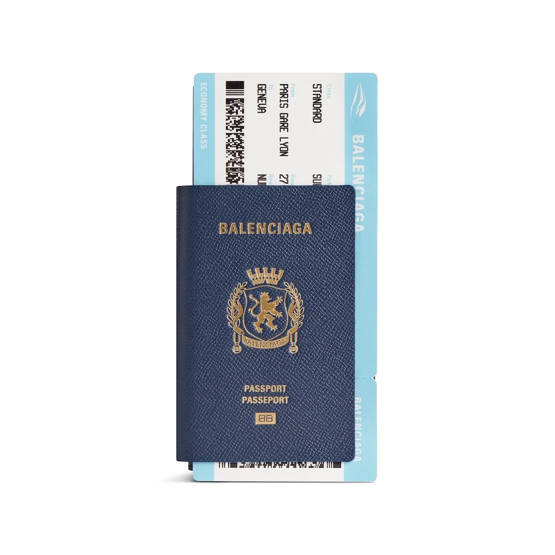 Passport Long Wallet 1 Ticket in passport blue semi matte soft textured calfskin PRODUCT DETAILS • Dimensions: L3,9 x H7,9 x W0,6 inch • Semi matte soft textured calfskin • Long wallet • Balenciaga logo and one trompe l'œil ticket printed at front • 1 zipped coin purse • 2 bill pockets • 6 card slots • Made in Italy Material: calfskin, cellulose, polyurethane