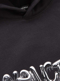 Balenciaga reworks its logo in dripping slime for this hoodie - melting graphics feature across the CR22 collection. It's made from cotton-blend jersey in the brand's typically baggy fit. Size & Fit - Size 1 = 5’7”(170cm), 2 = 5’9”(175cm), 3 = 5’11”(180cm) and 4 = 6’1”(185cm) - Fits true to size. Take your normal size - This hoodie has a relaxed cut - Dropped shoulder seam - Mid-weight, slightly stretchy fabric - Model wears a 4 - Model measures: chest 38"/ 96cm, height 6'1"/ 185cm Details & Care - Black, tonal-grey and white cotton-blend jersey - Designer emblem, front pouch pocket, ribbed trims - 80% cotton, 20% polyester; trim: 100% cotton - Machine wash - This item has been imported