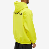 Balenciaga is famous for its bold approach to styling, and this hoody showcases that. It’s made in Portugal using vibrant yellow cotton and branded twice, with a small logo at the front and a larger one at the back. - 100% Cotton - Loopback Jersey - Drawstring Hood - Pouch Pocket - Printed Branding - Ribbed Trims