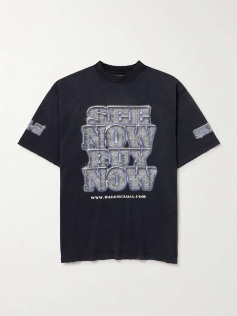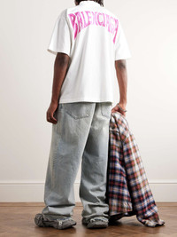 Cut for a slouchy fit from cotton-jersey, Balenciaga's mock-neck T-shirt is printed with hand-drawn artwork, giving it a DIY feel. Take the brand's lead and try it over a long-sleeved tee with baggy jeans. Size & Fit - Fits true to size. Take your normal size - Designed for an oversized fit - Dropped shoulder seam - Model is shown wearing a M - Model measures: chest 38"/ 96cm, height 6'0"/ 183cm Details & Care - White cotton-jersey - 100% cotton - Machine wash