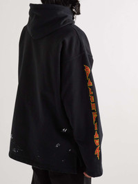 Logo-Print Distressed Cotton-Jersey Hoodie