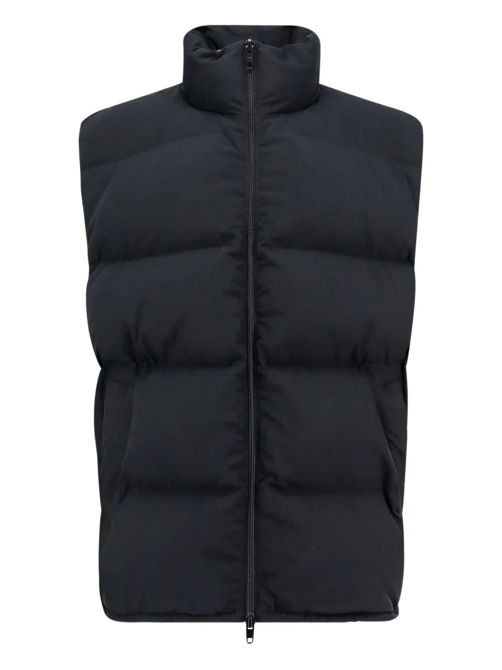 logo-print padded gilet Highlights - Black - Padded design - Two side pockets - Stand-up collar - Front two-way zip fastening - Logo print Imported Composition Polyester 100% Washing instructions Read Manufacturer Guidelines
