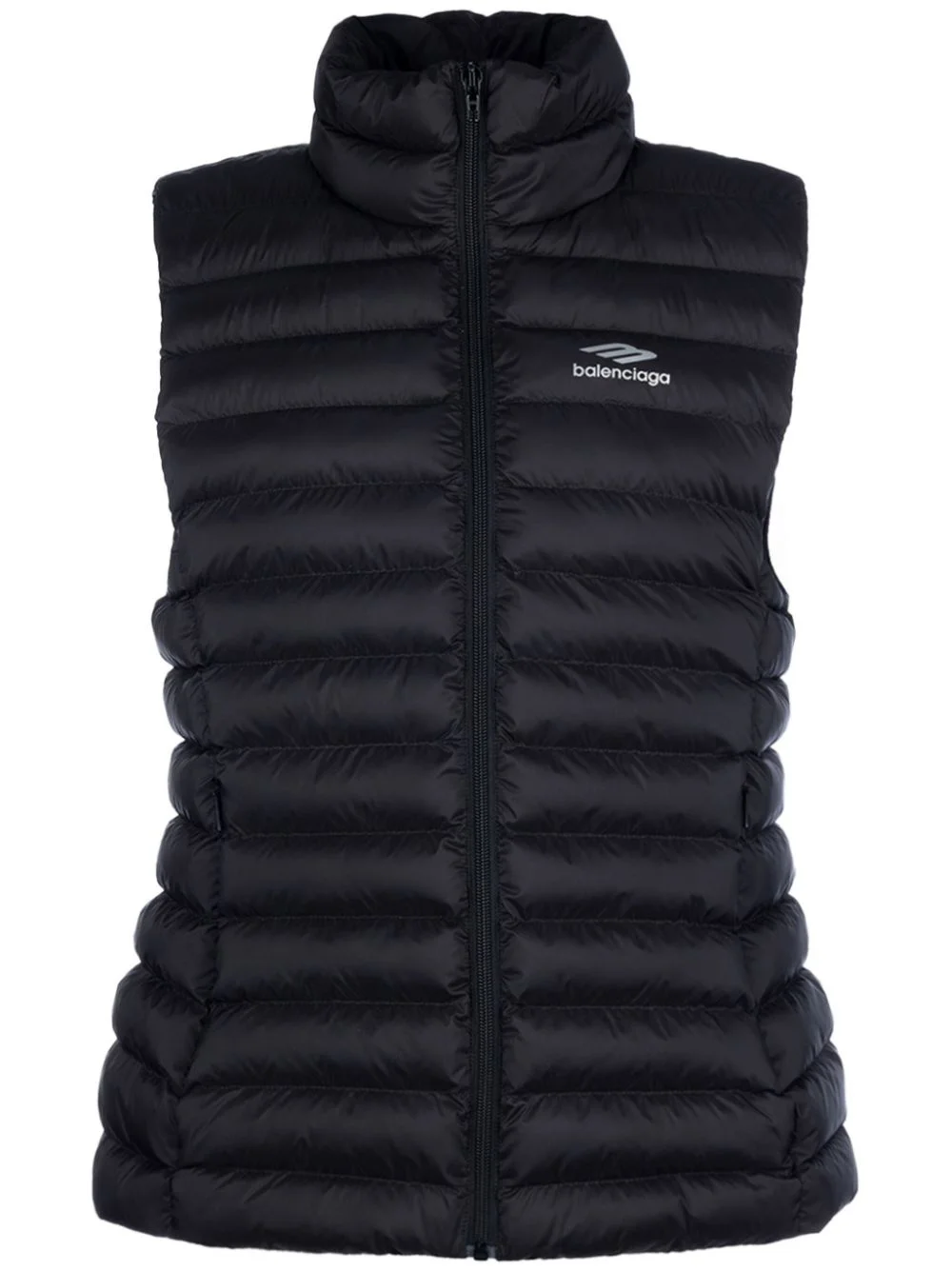 logo-print padded vest Highlights - Black - Padded design - Logo print at the chest - Front zip fastening - Funnel neck - Sleeveless - Two side zip-fastening pockets - Straight hem Made in Italy Composition Lining: Nylon 100%, Polyester 100% Outer: Nylon 100%