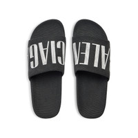 Pool Slide Sandal in black and white canvas PRODUCT DETAILS • Polyamide and acrylic • Slide Sandal • Molded rubber footbeds • Balenciaga logo on the upper • Used effect on the logo • Tone-on-tone sole and insole • Made in Italy Upper: polyamide, acrylic - Sole: TPU - Insole: polyamide, acrylic