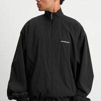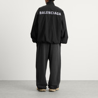 Balenciaga elevates sportswear with a luxurious twist, using subtle design codes like volume to make this track jacket unmistakably its own. Crafted from technical polyester, it features a smooth, lightweight texture punctuated by tonal embroidered branding. Elasticated cuffs and hem cinch the silhouette, creating a structured, voluminous shape that blends comfort with high-fashion edge. - 100% Polyester - Relaxed Fit - High Neck - 2-Way Zip Closure - 2 Zip Pockets - Embroidered Branding - Made in Portugal - Style Code: 839090-TRO31-1000