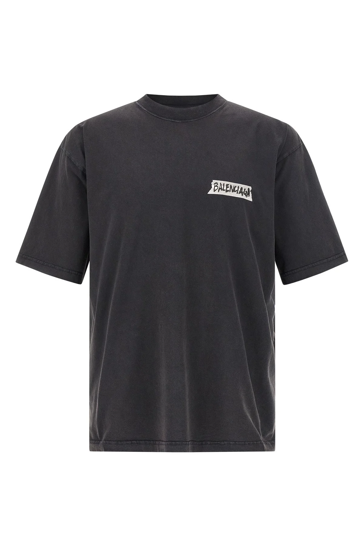cod. 764235TTVL61041 Dry jersey faded T-shirt, 'Masking Tape' print on the front and back, crew neck, short sleeves with dropped shoulders. Color: Black Size & Fit: medium fit Composition: 100% cotton Made in: Portugal