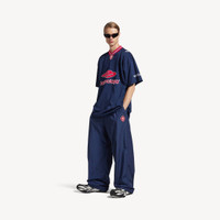 3B Football Tracksuit Pants in new dark navy techno cotton poplin PRODUCT DETAILS • Techno cotton poplin • Mid-waist • Elasticated waistband with drawstring • 2 slash pockets • Lion crest artwork embroidered on left leg • 3B sports icon artwork embroidered on right leg • Made in Italy Main material: 50% cotton, 50% polyamide