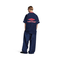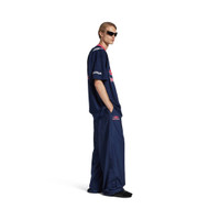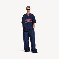 3B Football V-Neck T-Shirt Oversized in dark navy and red dry jersey PRODUCT DETAILS • Dry jersey • V-neck • Dropped shoulders • Short sleeves • 3B sports icon artwork printed and embroidered at front and back • Made in Portugal Main material: 100% cotton