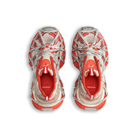 3XL Extreme Lace Sneaker in orange and beige mesh and polyurethane PRODUCT DETAILS • Leather free • Slip-on sneaker • Mesh and polyurethane • Worn-out effect • Multiple lace details all around the upper and on the sole • Balenciaga logo at the edge of the toe and at back • Debossed size on the upper and at the back of the heel • 3XL rubber branding on the tongue with reflective detail • Back and tongue pull-on tab with reflective detail • Made in China • Wipe with a soft cloth Material: 52% polyester, 48% polyurethane