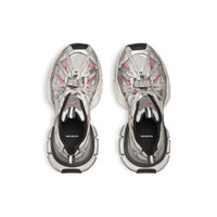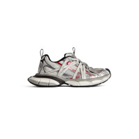 3XL Extreme Laces B Sneaker in grey, silver, red and black polyurethane and polyester PRODUCT DETAILS • Leather free • Slip-on sneaker • Polyurethane and polyester • Worn-out effect • Multiple lace details all around the upper • Metallic plate with logo engraved • Aged-silver B logo hardware on the upper • Balenciaga logo at the edge of the toe and at back • Debossed size on the upper and at the back of the heel • 3XL rubber branding on the tongue with reflective detail • Back and tongue pull-on tab with reflective detail • Made in China Upper: polyurethane, polyester - Sole: rubber, EVA - Insole: foam