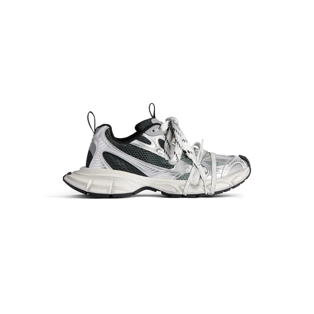 3XL Gradient Sneaker in black, grey and white mesh, polyurethane and polyester PRODUCT DETAILS • Leather free • Sneaker • Polyurethane and polyester • Worn-out effect • Balenciaga logo at the edge of the toe and at back • Embossed size on the upper and at the back of the heel • 3XL rubber branding on the tongue with reflective detail • 1 additional pair of laces included • Back and tongue pull-on tab with reflective detail • Caution: extra laces are tied around the shoes for styling purpose and should be removed before use • Made in China Upper: polyurethane, polyester - Sole: rubber, EVA - Insole: foam