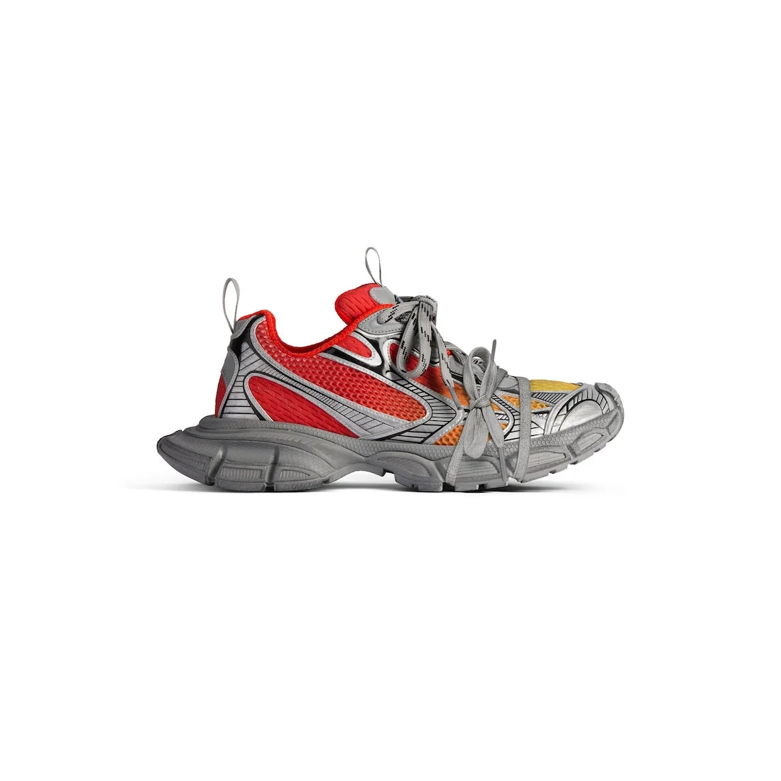3XL Gradient Sneaker in red, orange, grey and black mesh, polyurethane and polyester PRODUCT DETAILS • Leather free • Sneaker • Polyurethane and polyester • Worn-out effect • Balenciaga logo at the edge of the toe and at back • Embossed size on the upper and at the back of the heel • 3XL rubber branding on the tongue with reflective detail • 1 additional pair of laces included • Back and tongue pull-on tab with reflective detail • Caution: extra laces are tied around the shoes for styling purpose and should be removed before use • Made in China Upper: polyurethane, polyester - Sole: rubber, EVA - Insole: foam