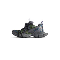 3XL Sneaker in dark grey, black, blue and green mesh, polyurethane and polyester PRODUCT DETAILS • Leather free • Sneaker • Mesh, polyurethane and polyester • Worn-out effect • Balenciaga logo at the edge of the toe and at back • Embossed size on the upper and at the back of the heel • 3XL rubber branding on the tongue with reflective detail • Back and tongue pull-on tab with reflective detail • Caution: extra laces are tied around the shoes for styling purpose and should be removed before use • Made in China Upper: polyurethane, polyester - Sole: rubber, EVA - Insole: foam