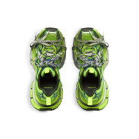 3XL Sneaker in neon yellow and blue mesh and polyurethane PRODUCT DETAILS • Leather free • Sneaker • Mesh and polyurethane • Worn-out effect • Balenciaga logo at the edge of the toe and at back • Embossed size on the upper and at the back of the heel • 3XL rubber branding on the tongue with reflective detail • Back pull-on tab and tongue pull-on tab with reflective detail • Caution: extra laces are tied around the shoes for styling purpose and should be removed before use • Made in China • Wipe with a soft cloth Material: 60% polyurethane, 40% polyester
