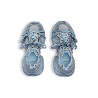3XL Sneaker in light blue destroyed canvas PRODUCT DETAILS • Leather free • Sneaker • Destroyed canvas • Worn-out effect • Balenciaga logo at the edge of the toe and at back • Debossed size on the upper and at the back of the heel • 3XL rubber branding on the tongue • Back and tongue pull-on tab with reflective detail • Caution: extra laces are tied around the shoes for styling purpose and should be removed before use • Made in China Material: recycled cotton, cotton