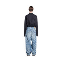Allover Logo Large Fit Pants in light blue soft denim PRODUCT DETAILS • Allover Logo printed soft denim, recycled polyester • Unifit • Large fit • Mid-waist • Covered zip fly • 5 pockets • 5 large belt loops • Balenciaga engraved flex buttons • Balenciaga inlaid patch at back • Made in Italy • Dry cleaning • Model is 186 cm / 6'10'' and is wearing a FR size S Material: 51% cotton, 43% cellulose, 6% polyester