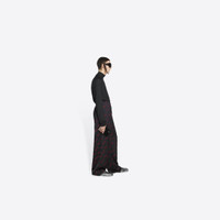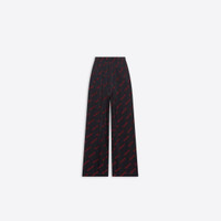 Allover Script Logo Pyjama Pants in black and red jacquard viscose PRODUCT DETAILS • Allover script logo viscose • Large fit • Straight leg • Mid waist • Concealed zip fly • Elasticated waistband • 2 slash pocket • 1 patch pocket on the back • Front embroidered logo patch • Made in Italy • Dry cleaning • Model is 181 cm / 5'93" and is wearing a FR size 46 Our approach: We are committed to the sustainable and ethical management of our operations. The goal of reducing our environmental impact influences our decisions. At all levels and in all locales—whether at offices and stores or along the supply chain—we respect high standards for social and ecological responsibility. Balenciaga is also fur- and exotic leather-free. Material: 93% viscose, 7% polyester