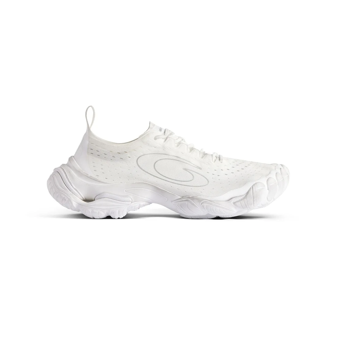 Anatomic Runner Sneaker in white polyester is from look 41 of Balenciaga FALL 25 Collection. PRODUCT DETAILS • Slip-on sneaker • Polyester • Five toe anatomical shape • Elastic laces on the upper • Balenciaga logo printed on the tongue • Loop sport icon artwork on each side • Debossed size at back of the heel • Balenciaga logo debossed at the back of the sole • Back pull-on tab • Made in China Upper: polyester - Sole: rubber, EVA - Insole: foam