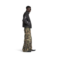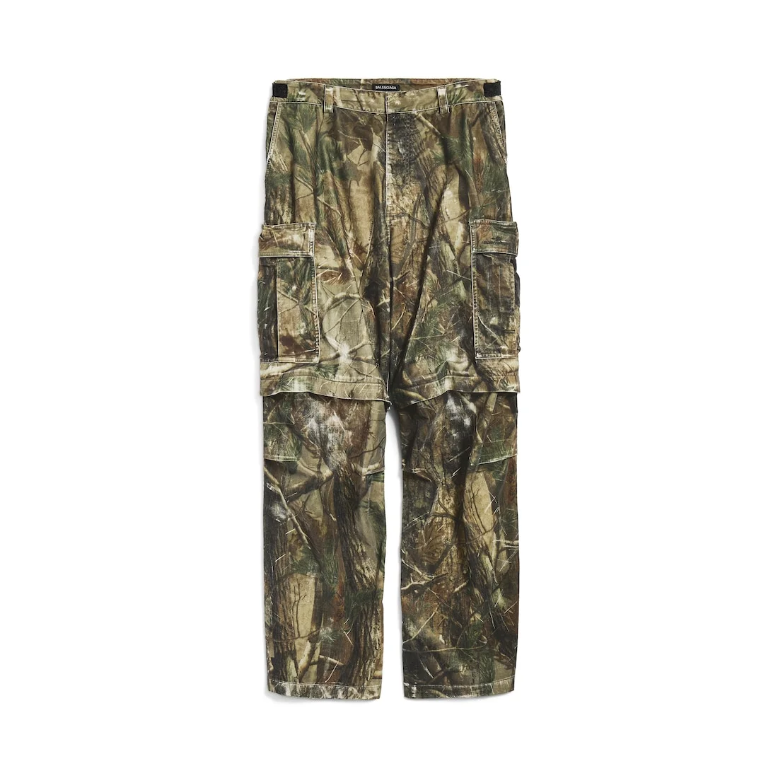 Baggy Cargo Pants in brown Feuillage Camo flocked cotton for Men PRODUCT DETAILS • Feuillage Camo flocked cotton • Invisible snap closure • Mid-waist • Covered zip fly • 5 belt loops • 2 slash pockets at front • 2 side cargo pockets • 2 back patch pockets • 1 zip at knee to remove the bottom • B Diamond artwork embroidered on left side pocket • Made in Italy Main material: 100% cotton