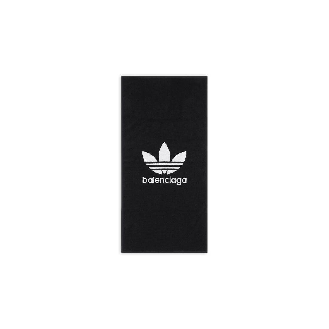adidas Beach Towel in black and white cotton is done in collaboration with adidas. PRODUCT DETAILS • Dimensions: L39,3 x H66,9 inch • Cotton • adidas Trefoil and Balenciaga logos at front • adidas® collaboration • The Trefoil logo, the 3-Bars logo and the 3-Stripes mark are registered trademarks of adidas • Made in Turkey • Cold machine wash Material: 100% cotton