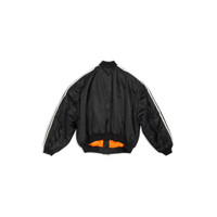 adidas Bomber in black light nylon is done in collaboration with adidas. This jacket is from the look 48 of the Balenciaga's Spring 23 Collection, NYC Show. PRODUCT DETAILS • Light bomber nylon • Large fit • Bomber shape • Double-ended zipped closure • Cargo pocket on left sleeve • 2 snap flap pockets at front • Wrist and waistline ribbings • Contrasting lining • adidas Trefoil and Balenciaga logos embroidered tone-on-tone at chest • Contrasting 3-Stripes mark on shoulders and sleeves • adidas® collaboration • The Trefoil logo, the 3-Bars logo and the 3-Stripes mark are registered trademarks of adidas • Made in Italy • Dry cleaning • The model is wearing a size 46 Material: 100% polyamide