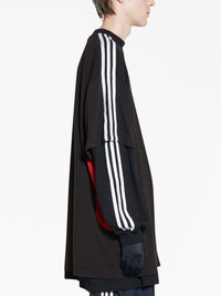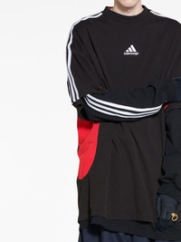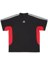 adidas T-Shirt Medium Fit in black, red and white vintage jersey is done in collaboration with adidas. This t-shirt is from the look 51 of the Balenciaga's Spring 23, NYC Show. PRODUCT DETAILS • Vintage jersey • Unifit • Medium fit • Crewneck • Short sleeves • Contrasting yokes on sides • adidas 3-Bars and Balenciaga logos embroidered at front • Contrasting 3-Stripes mark on shoulders and sleeves • adidas® collaboration • The Trefoil logo, the 3-Bars logo and the 3-Stripes mark are registered trademarks of adidas • Made in Portugal • Dry cleaning • The model is wearing a size S Material: 100% cotton